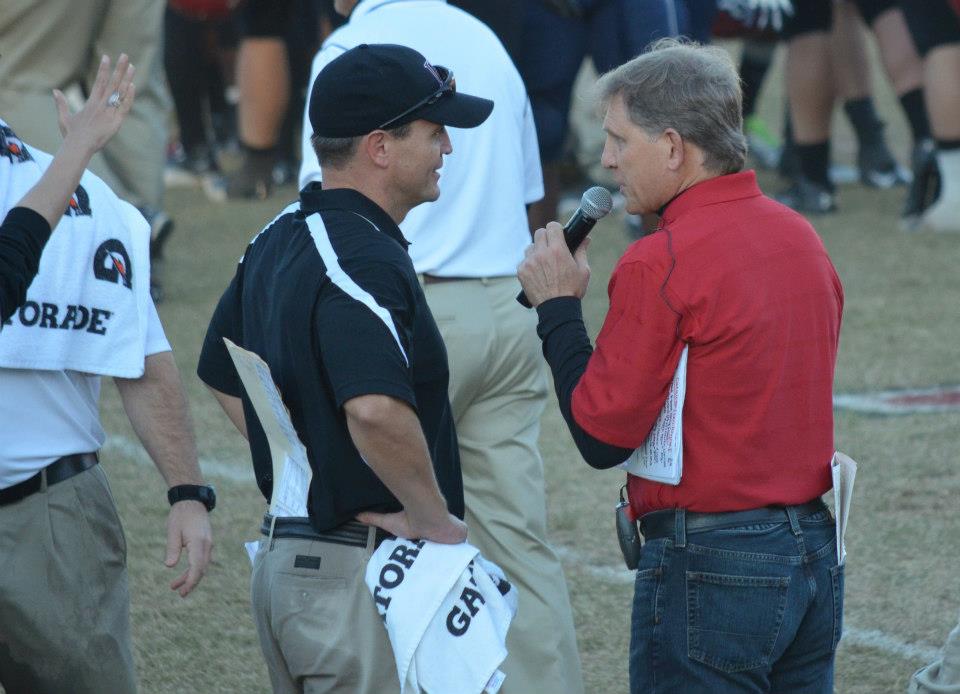 JuJu Phillips (right), a former wide receiver for Lenoir-Rhyne University, returns this season as play-by-play announcer on radio broadcasts of LRU football games.