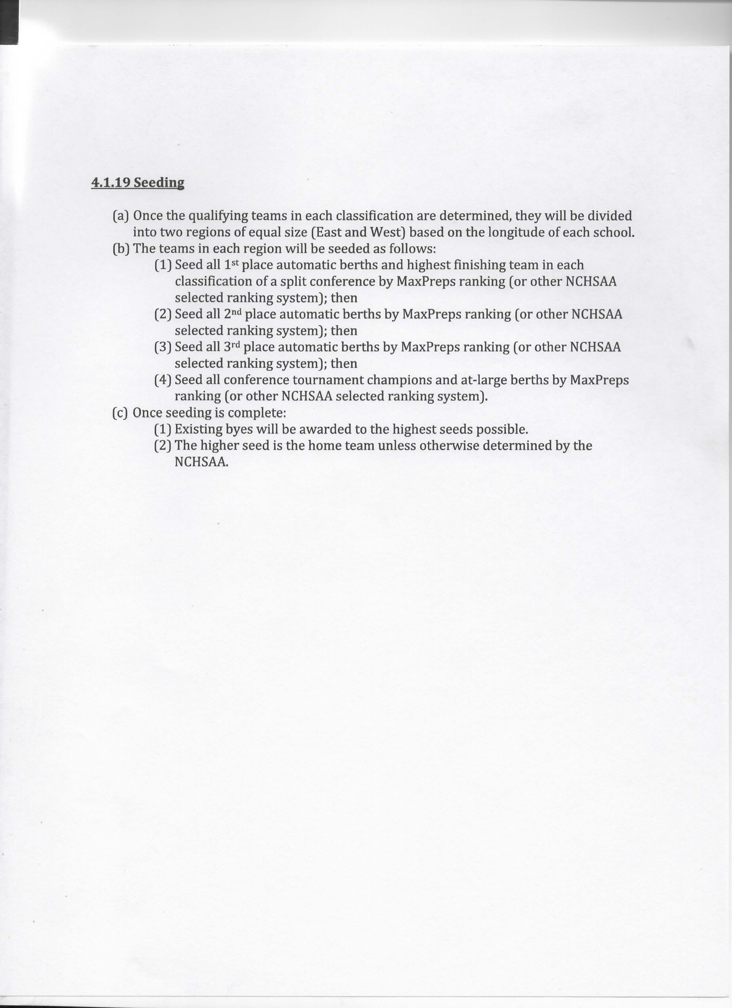 The board approved MaxPreps-related rankings becoming part of the information NCHSAA staff uses when developing seeds for playoff brackets, the first such move into that realm by the NCHSAA when it comes to filling its postseason brackets. Traditionally, the NCHSAA has stuck to raw numbers, like records/winning percentage, and not used anything like a ranking as a factor.